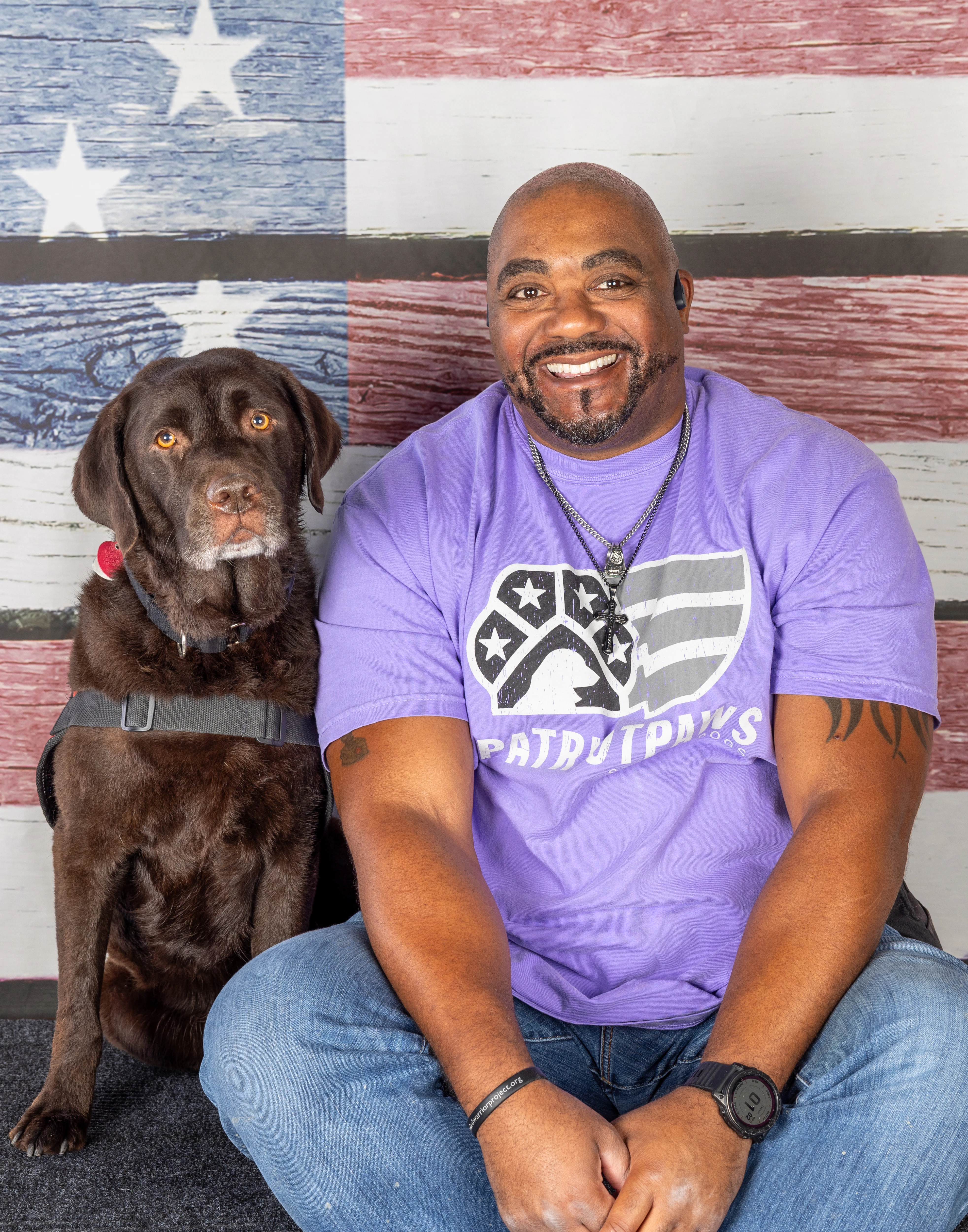 Our founder and his service dog while assisting another veteran with getting his service dog at Patriot Paws Service Dogs.